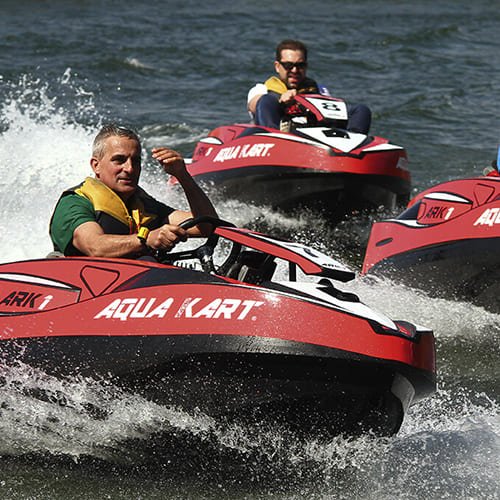 ¡Sumérgete en una nueva experiencia conduciendo karts en el agua! Disfruta de tandas de 8 minutos, con una edad mínima de 16 años y grupos a partir de 6 personas.