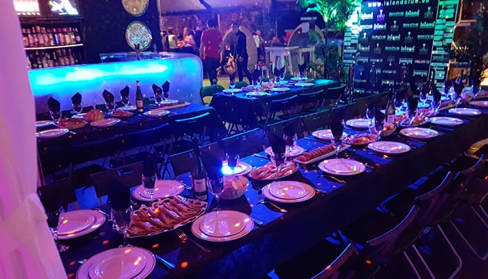 La recepción en el Complejo Hostelero Island Club comienza a las 22:00. Aquí disfrutarás de la atmósfera animada de la zona de cafetería-cervecería, con karaoke, photo-call y animación en Vigo especial para despedidas.